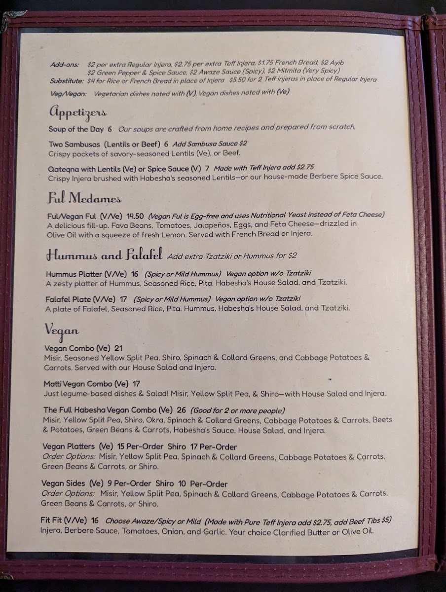 If you're in the mood for authentic Ethiopian flavors, the Habesha Cafe Menu is where you’ll want to be. Located at 5710 Rainier Ave S in Seattle, WA, this cozy spot brings the rich, vibrant tastes of Ethiopia to the heart of the city. From tender stews to flavorful spices, every dish on the menu offers something unique. Whether you're craving the traditional Doro Wat, savory Kitfo, or a variety of vegetarian options, there's no shortage of options to satisfy your hunger. The meals are perfectly paired with injera, a soft and tangy flatbread that complements the flavors beautifully. Every bite is a celebration of bold, homemade tastes that are sure to make you feel right at home. So, gather your friends and family, because the Habesha Cafe Menu promises a delightful journey through Ethiopian cuisine right in the heart of Seattle.